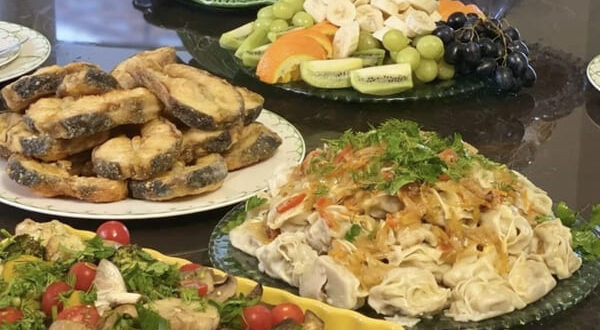 Катя розставила на столі красиві тарілки, ложки, виделки, келихи. Потім зайшла на кухню і перевірила ступінь готовності вечері. Салат зроблений, закуски нарізані, м’ясо стоїть у духовці і чекає